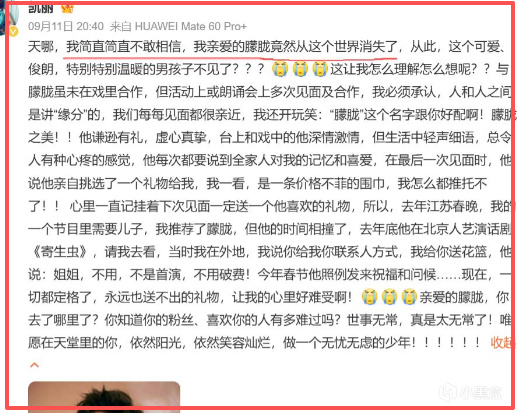 37 岁演员于朦胧意外离世的消息,这两天让不少观众和网友陷入悲痛。